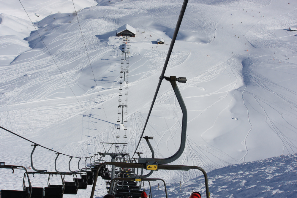 Those who change their mind can watch their more courageous friends descend it from the Chavanette chairlift, which runs down its side. I jokingly call it the ‘Chairlift of Shame’ because it’s ridden by those who’ve wimped out.